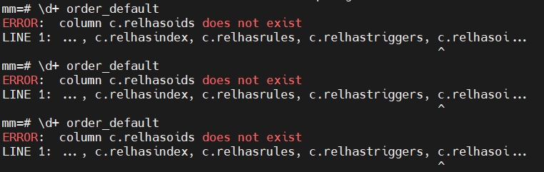Trong khi bạn thực hiện câu lệnh d+ table_name để xem chi tiết thông tin...