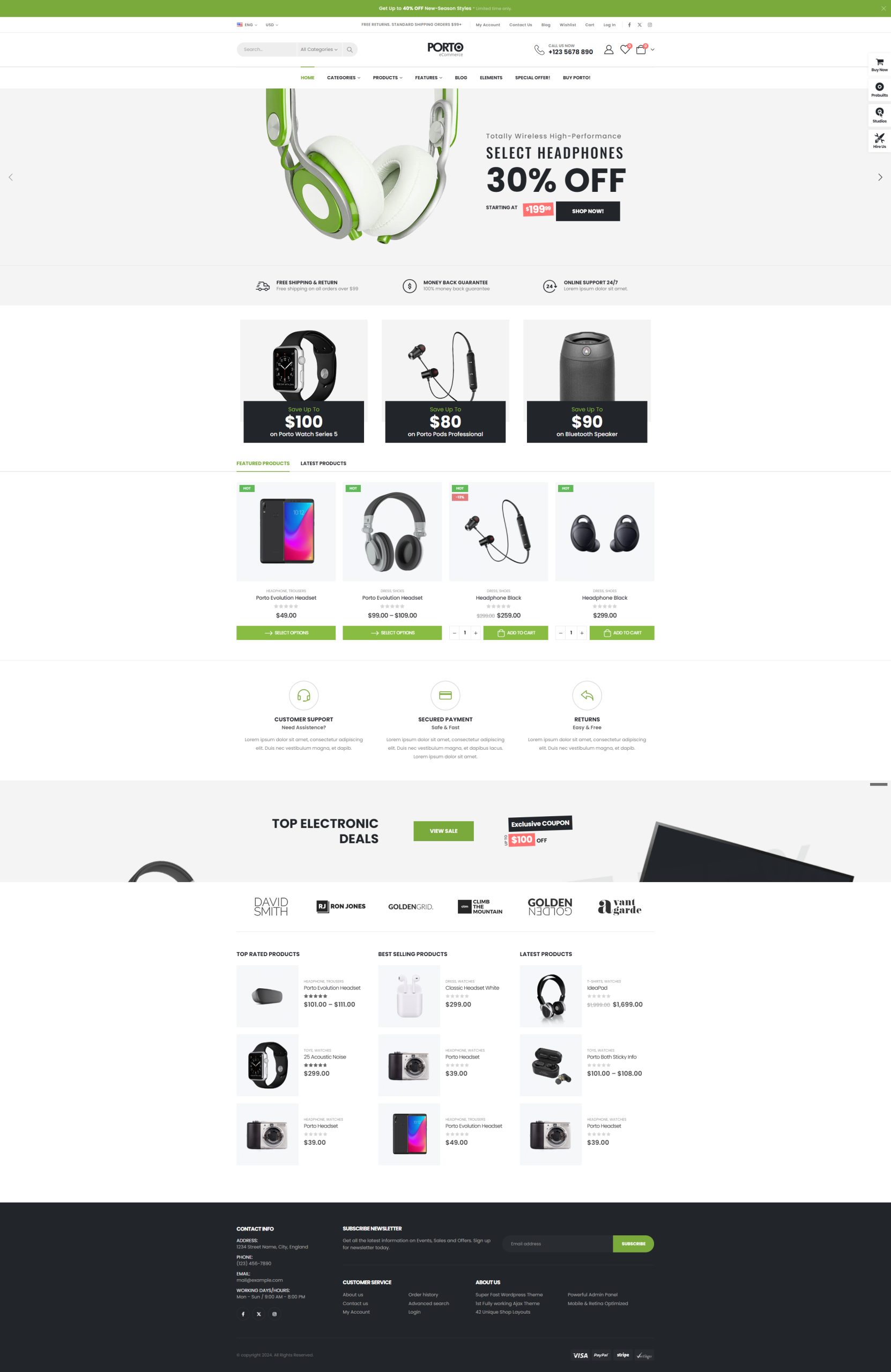 Điểm nổi bật của mẫu: Web mẫu – Shop thiết bị điện tử đồng hồ, tai nghe, tablet shop14